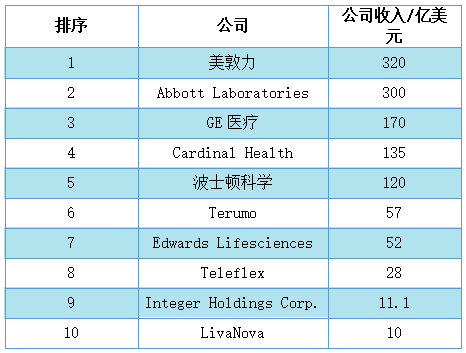 對(duì)此,器械之家對(duì)該百?gòu)?qiáng)榜心臟疾病相關(guān)的前十家醫(yī)療器械公司進(jìn)行了排名和介紹,上圖為前十家械企名單。