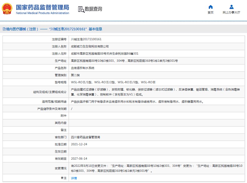 產(chǎn)品供醫(yī)療部門用于制備多床血液透析用水和粉末制備濃縮液用水、透析液制備用水、透析器復(fù)用用水。