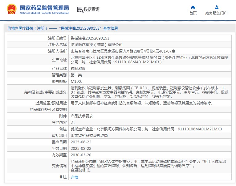 用于人體腦部中樞神經(jīng)疾病引起的言語障礙、認知障礙、運動障礙及其康復的輔助治療。