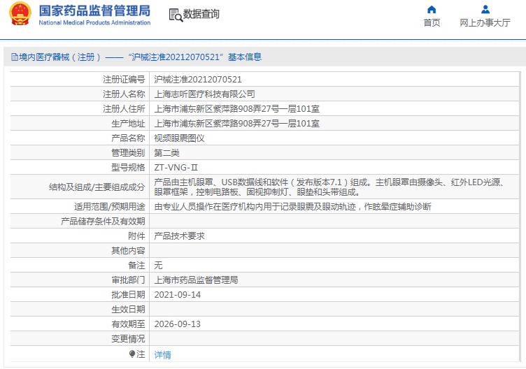 由專業(yè)人員操作在醫(yī)療機構內(nèi)用于記錄眼震及眼動軌跡,作眩暈癥輔助診斷