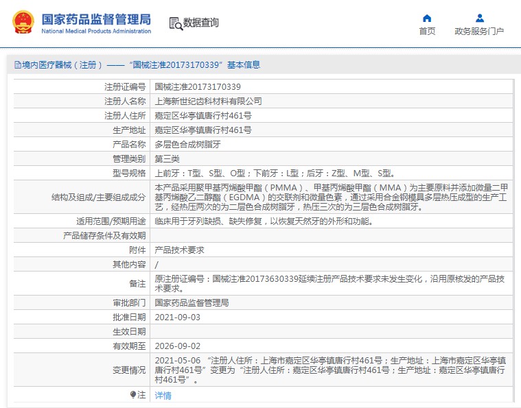 本產(chǎn)品采用聚甲基丙烯酸甲酯(PMMA)、甲基丙烯酸甲酯(MMA)為主要原料并添加微量二甲基丙烯酸乙二醇酯(EGDMA)的交聯(lián)劑和微量色素,通過采用合金鋼模具多層熱壓成型的生產(chǎn)工藝,經(jīng)熱壓兩次的為二層色合成樹脂牙,熱壓三次的為三層色合成樹脂牙。