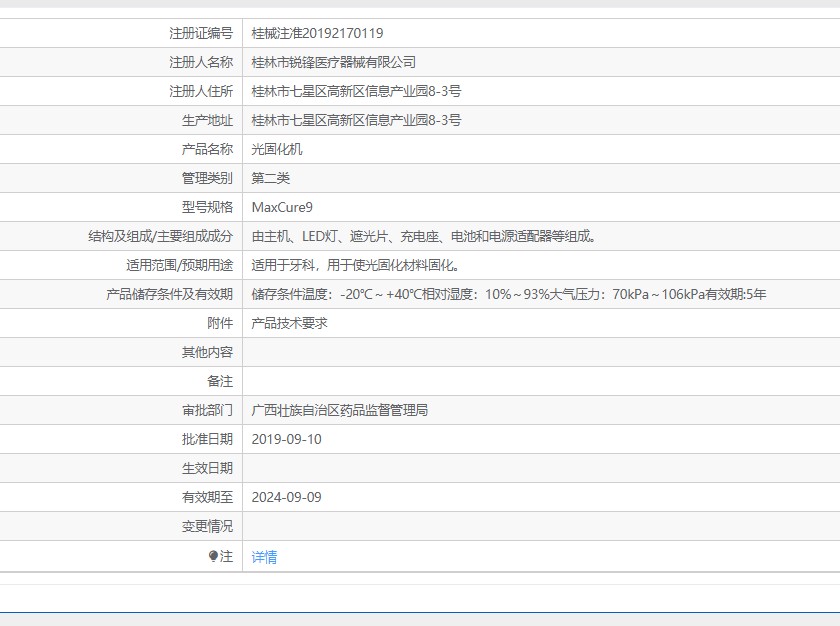 .由主機、LED燈、遮光片、充電座、電池和電源適配器等組成。適用于牙科,用于使光固化材料固化。儲存條件溫度:-20℃~+40℃相對濕度:10%~93%大氣壓力:70kPa~106kPa有效期:5年