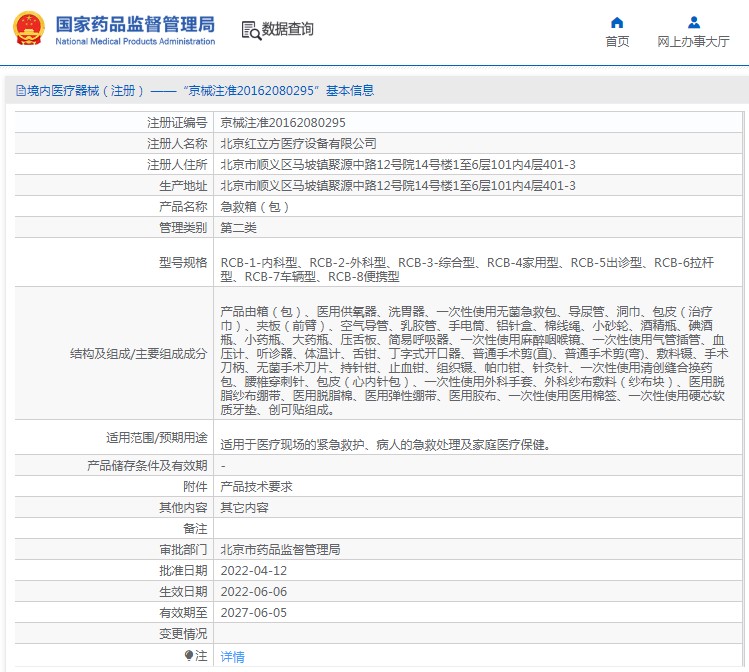 產(chǎn)品由箱(包)、醫(yī)用供氧器、洗胃器、***次性使用無菌急救包、導尿管、洞巾、包皮(治療巾)、夾板(前臂)、空氣導管、乳膠管、手電筒、鋁針盒、棉線繩、小砂輪、酒精瓶、碘酒瓶、小藥瓶、大藥瓶、壓舌板、簡易呼吸器、***次性使用麻醉咽喉鏡、***次性使用氣管插管、血壓計、聽診器、體溫計、舌鉗、丁字式開口器、普通手術(shù)剪(直)、普通手術(shù)剪(彎)、敷料鑷、手術(shù)刀柄、無菌手術(shù)刀片、持針鉗、止血鉗、組織鑷、帕巾鉗、針灸針、***次性使用清創(chuàng)縫合換藥包、腰椎穿刺針、包皮(心內(nèi)針包)、***次性使用外科手套、外科紗布敷料(紗布塊)、醫(yī)用脫脂紗布繃帶、醫(yī)用脫脂棉、醫(yī)用彈性繃帶、醫(yī)用膠布、***次性使用醫(yī)用棉簽、***次性使用硬芯軟質(zhì)牙墊、創(chuàng)可貼組成。
