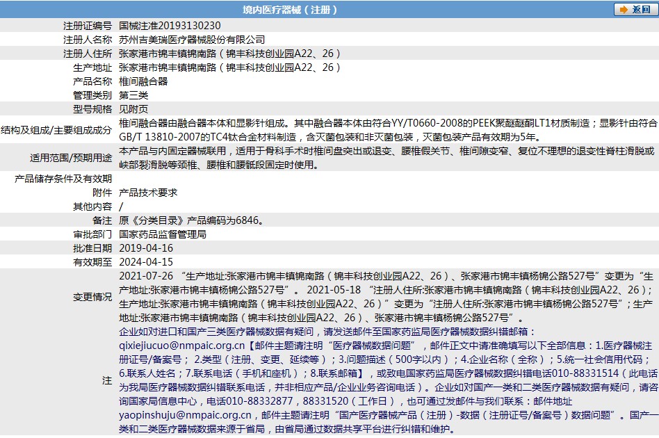 歡迎語尊敬的客戶您好:上海聚慕醫(yī)療做為中國國產(chǎn)的廠家合作伙伴,可靠的提供吉美瑞椎間融合器技術(shù)選型,您可以了解吉美瑞椎間融合器的詳細介紹,配置,如需了解吉美瑞椎間融合器招標授權(quán)及產(chǎn)品詳細技術(shù)參數(shù),彩頁及使用方法,可通過致電聚慕醫(yī)療全國熱線電話400-901-5099向我們的產(chǎn)品經(jīng)理咨詢。