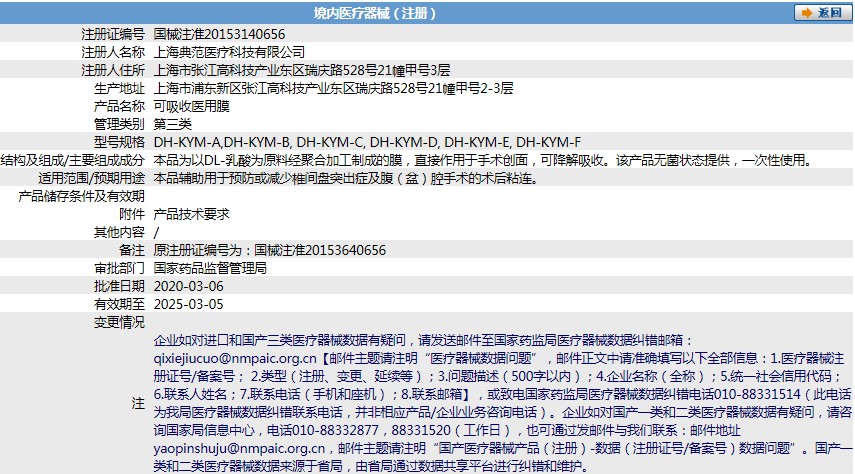 品輔助用于預防或減少椎間盤突出癥及腹(盆)腔手術(shù)的術(shù)后粘連。