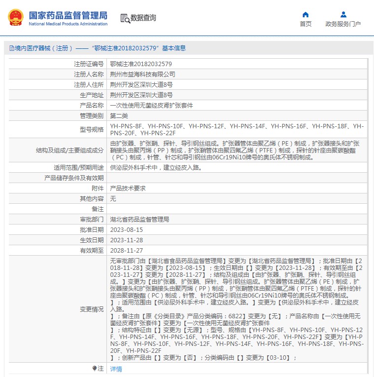 由擴(kuò)張器、擴(kuò)張鞘、探針、導(dǎo)引鋼絲組成。擴(kuò)張器管體由聚乙烯(PE)制成,擴(kuò)張器接頭和擴(kuò)張鞘接頭由聚丙烯(PP)制成,擴(kuò)張鞘管體由聚四氟乙烯(PTFE)制成,探針的針座由聚碳酸酯(PC)制成,針管、針芯和導(dǎo)引鋼絲由06Cr19Ni10牌號的奧氏體不銹鋼制成。