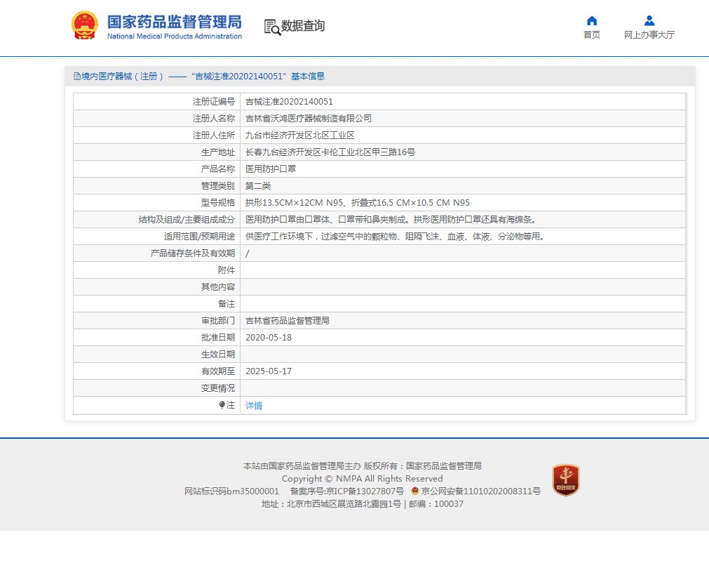 產(chǎn)品過濾效率符合GB 19083-2010《醫(yī)用防護(hù)口罩技術(shù)要求》相關(guān)要求。