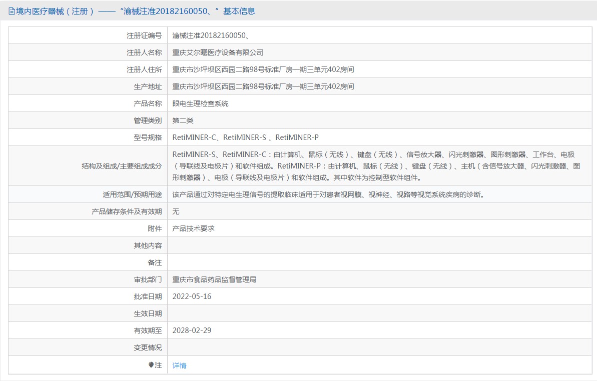 RetiMINER-S、RetiMINER-C:由計算機、鼠標(無線)、鍵盤(無線)、信號放大器、閃光刺激器、圖形刺激器、工作臺、電極(導(dǎo)聯(lián)線及電極片)和軟件組成。 RetiMINER-P:由計算機、鼠標(無線)、鍵盤(無線)、主機(含信號放大器、閃光刺激器、圖形刺激器)、電極(導(dǎo)聯(lián)線及電極片)和軟件組成。其中軟件為控制型軟件組件。