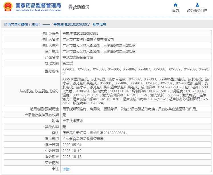 XY-910型由主機、皮膚電極、熱療帶組成;XY-802、XY-803、XY-805型由主機、皮膚電極、熱療帶、激光輸出頭組成;XY-801、XY-806、XY-807、XY-808、XY-809、XY-908型由主機、皮膚電極、熱療帶、激光輸出頭和超聲波輸出頭組成。輸出頻率:0.5Hz~12KHz;輸出電流:500Ω負載,≤100mA;輸出負載:500Ω±10%;調(diào)制頻率:0Hz~150Hz;調(diào)幅度:0%~100%;溫度:30℃~60℃±3℃;激光輸出頻率:1mW~5mW;激光波長:635nm;激光模式:連續(xù)激光;超聲波輸出頻率:1MHz±10%;超聲波輸出功率:≤3w/cm2;超聲波有效輻射面積:<5cm2;額定功率:≤200VA。
