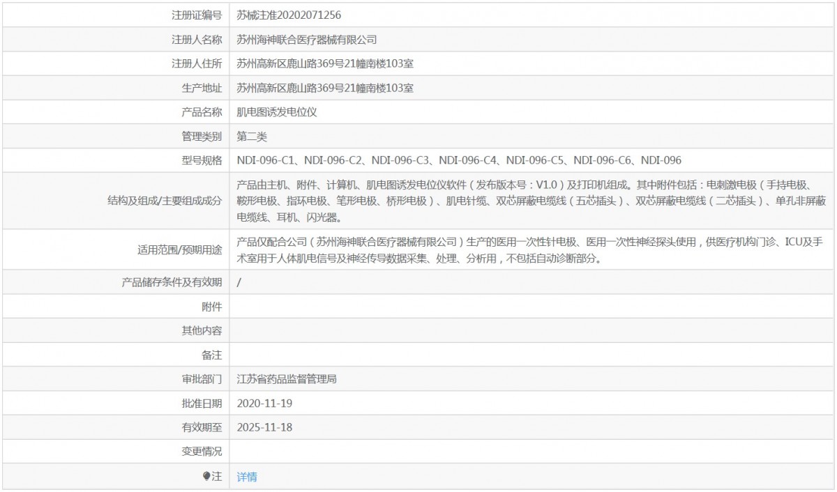 產(chǎn)品僅配合公司(蘇州海神聯(lián)合醫(yī)療器械有限公司)生產(chǎn)的醫(yī)用***次性針電極、醫(yī)用***次性神經(jīng)探頭使用,供醫(yī)療機構(gòu)門診、ICU及手術(shù)室用于人體肌電信號及神經(jīng)傳導數(shù)據(jù)采集、處理、分析用,不包括自動診斷部分。