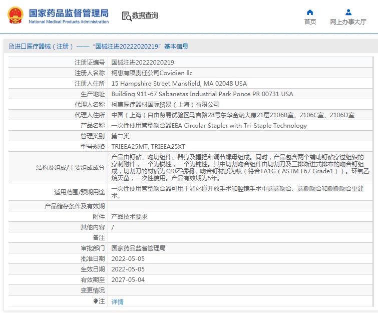 產(chǎn)品由釘砧、吻切組件、器身及握把和調(diào)節(jié)螺母組成。同時(shí),產(chǎn)品包含兩個(gè)輔助釘砧穿過(guò)組織的穿刺附件,***個(gè)為銳性,***個(gè)為鈍性。其中切割吻合組件由切割刀及三排漸進(jìn)式排布的吻合釘組成,切割刀的材質(zhì)為420不銹鋼,吻合釘材質(zhì)為鈦(符合TA1G(ASTM F67 Grade1))。環(huán)氧乙烷滅菌,***次性使用。