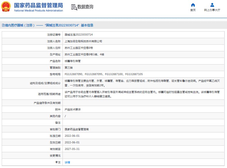 該產品用于協(xié)助血管內導管插入并被引導至外周或神經血管系統(tǒng)的目標血管內。球囊可臨時性阻塞血管或控制血流。該球囊導引導管還可以用于為治療和介入器械建立通路。