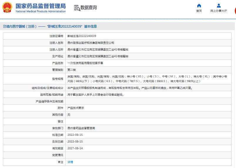 ***次性使用醫(yī)用橡膠檢查手套光面/無粉益思達