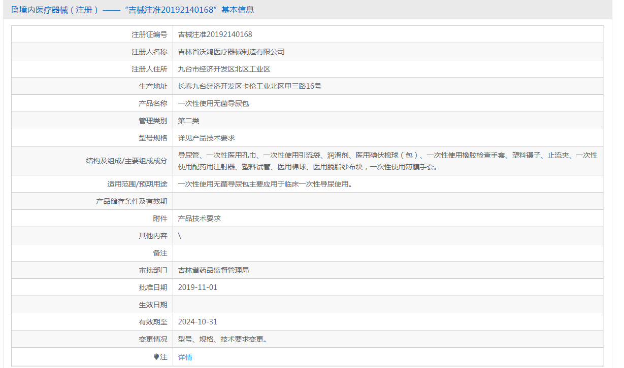 導尿管、***次性醫(yī)用孔巾、***次性使用引流袋、潤滑劑、醫(yī)用碘伏棉球(包)、***次性使用橡膠檢查手套、塑料鑷子、止流夾、***次性使用配藥用注射器、塑料試管、醫(yī)用棉球、醫(yī)用脫脂紗布塊,***次性使用薄膜手套。