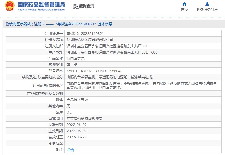 與腸內(nèi)營養(yǎng)泵用輸注管路配套使用,不接觸輸注液體,供醫(yī)院以可調(diào)節(jié)的方式為患者胃腸道輸注營養(yǎng)液用,僅適用于腸內(nèi)營養(yǎng)輸注。