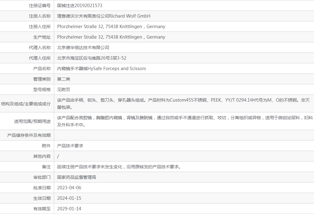 結(jié)構(gòu)及組成/主要組成成分 該產(chǎn)品由手柄、鉗頭、剪刀頭、穿孔器頭組成。產(chǎn)品材料為Custom455不銹鋼、PEEK、YY/T 0294.1中代號(hào)為M、O的不銹鋼。非滅菌包裝。 適用范圍/預(yù)期用途 該產(chǎn)品配合宮腔鏡,胸腹腔內(nèi)窺鏡,腎鏡及膀胱鏡,通過(guò)自然或手術(shù)通道進(jìn)行抓取、咬切,分離組織或異物,適用于微創(chuàng)泌尿科,婦科及外科手術(shù)中。