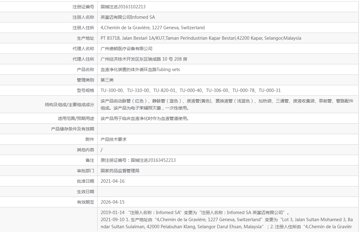 該產(chǎn)品用于臨床血液凈化時作為血液管道使用。
