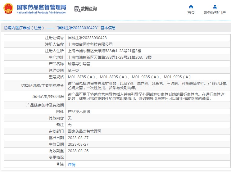 該產(chǎn)品包括球囊導(dǎo)管和擴(kuò)張器,以及Y閥、單向閥、延長(zhǎng)管、三通閥、可撕鞘等附件。產(chǎn)品經(jīng)環(huán)氧乙烷滅菌,***次性使用。貨架有效期兩年。