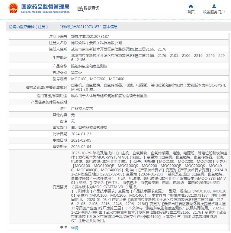 由主機、血氧模塊、血氧傳感器、電池、電源線、等電位線和軟件組件(發(fā)布版本為MOC-SYSTEM V01)組成。