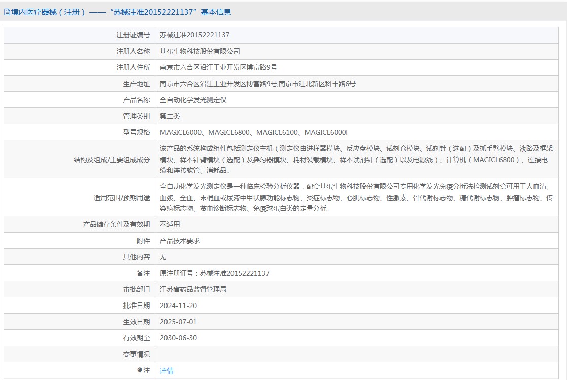 適用范圍/預(yù)期用途?全自動化學發(fā)光測定儀是***種臨床檢驗分析儀器,配套基蛋生物科技股份有限公司***化學發(fā)光免疫分析法檢測試劑盒可用于人血清、血漿、全血、末梢血或尿液中甲狀腺功能標志物、炎癥標志物、心肌標志物、性激素、骨代謝標志物、糖代謝標志物、腫瘤標志物、傳染病標志物、貧血診斷標志物、免疫球蛋白類的定量分析。