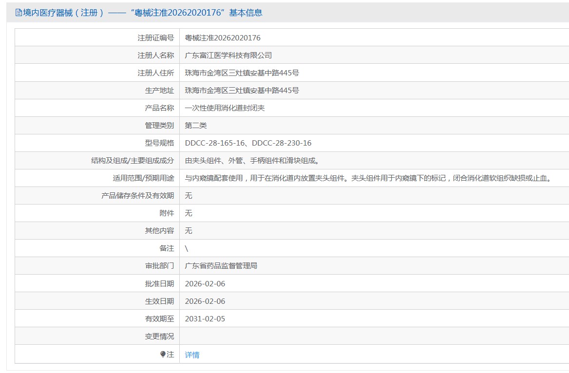 DDCC-28-165-16***次性使用消化道封閉夾專為內(nèi)窺鏡輔助下的消化道治療設(shè)計(jì),可***閉合消化道軟組織缺損或?qū)崿F(xiàn)止血功能。