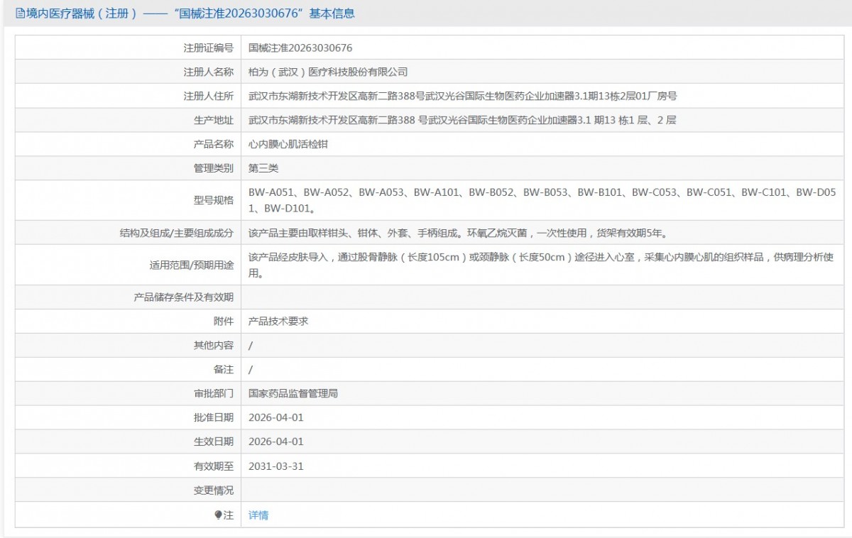 在心臟疾病的診斷領(lǐng)域,***獲取心肌組織樣本是關(guān)鍵***環(huán)。BW - B101心內(nèi)膜心肌活檢鉗就是為此精心打造的專業(yè)醫(yī)療器械。它就像***位技藝高超的“心臟取樣師”,能夠順著血管的通道,***抵達(dá)心臟內(nèi)部,小心翼翼地夾取心內(nèi)膜下的心肌組織,為醫(yī)生深入了解心臟的病理狀況提供關(guān)鍵依據(jù),助力醫(yī)生制定出更貼合患者病情的治療方案。
